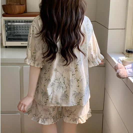 Lana Summer Bamboo Print Pajama Set – Short Sleeve Top & Shorts