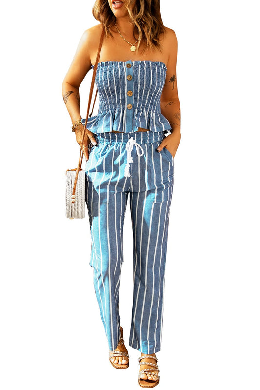 Bella Blue Striped Summer Set | Crop Top & Pants