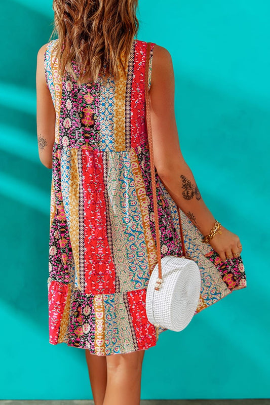 Boho Patchwork Summer Dress | Sleeveless V Neck with Pockets